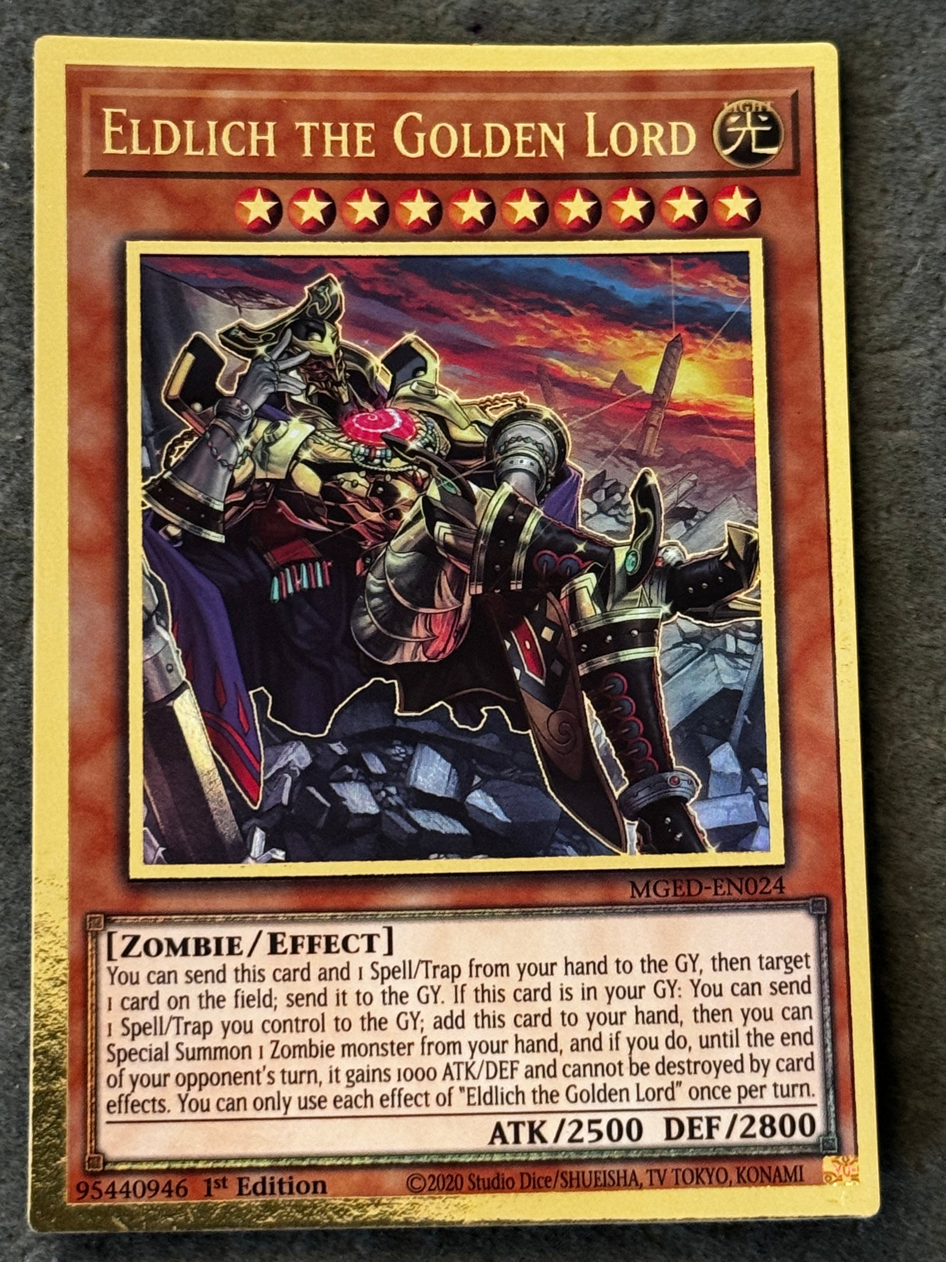 Yu-Gi-Oh! Eldlich The Golden Lord MGED-EN024 Gold Rare, Near Mint, 1st Edition.