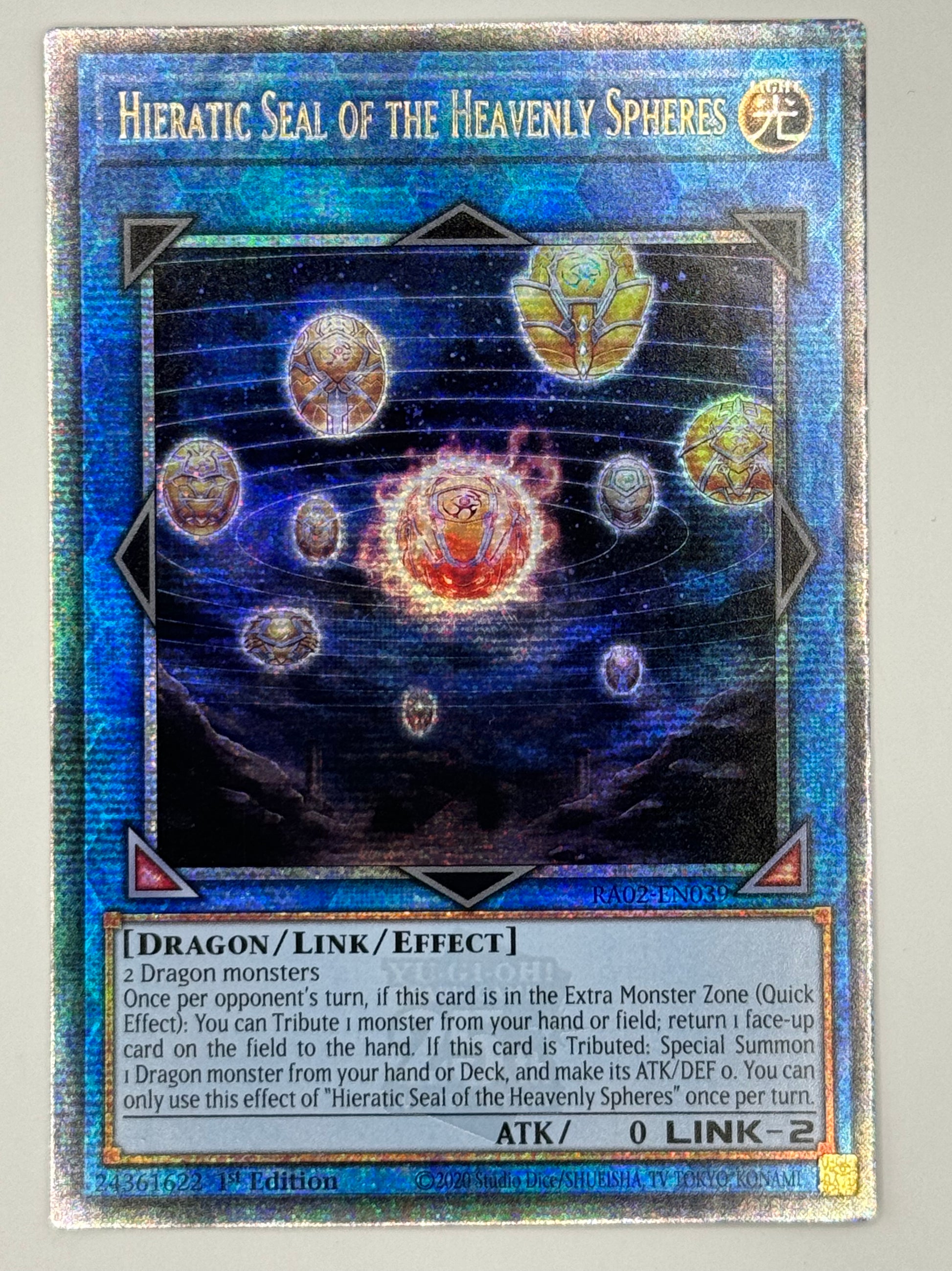 Yu-Gi-Oh! Hieratic Seal Of The Heavenly Spheres RA02-EN039 Quarter Century Secret Rare, Near Mint, 1st Edition.