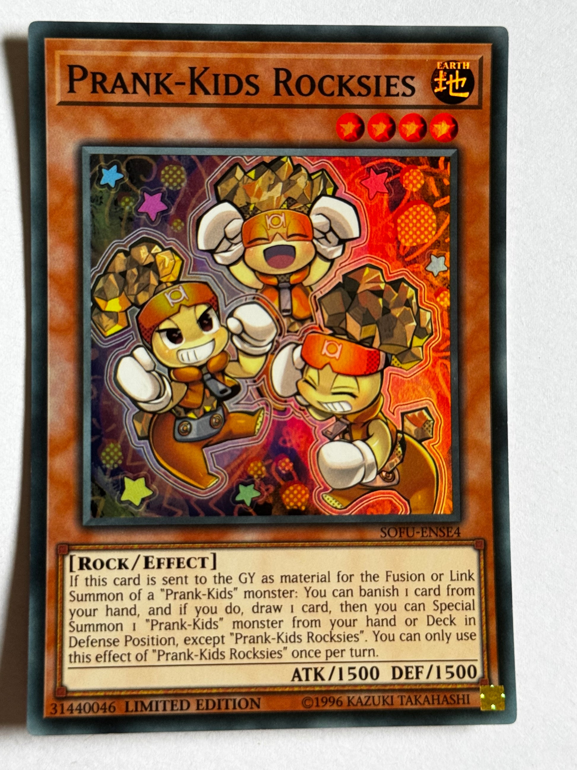 Yu-Gi-Oh! Prank-Kids Rocksies SOFU-ENSE4 Super Rare, Near Mint, Limited Edition.