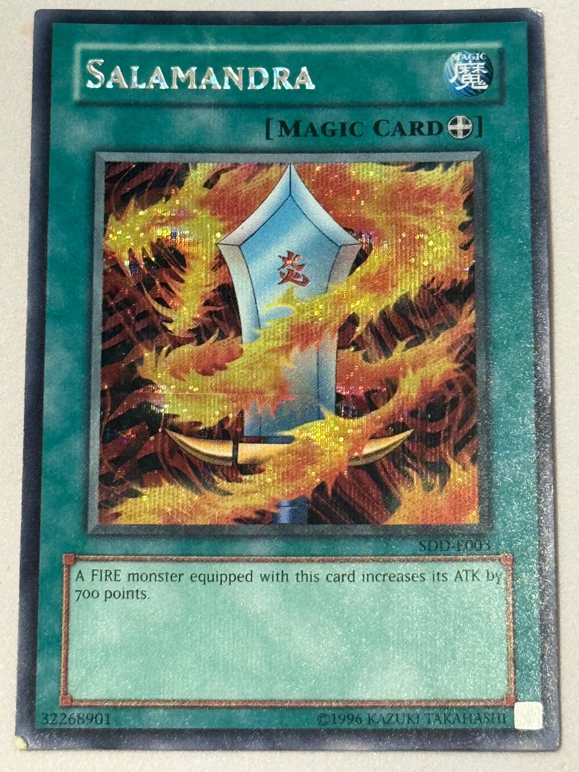 Yu-Gi-Oh! Salamandra SDD-E001 Secret Rare, Moderately Played, Unlimited Edition.