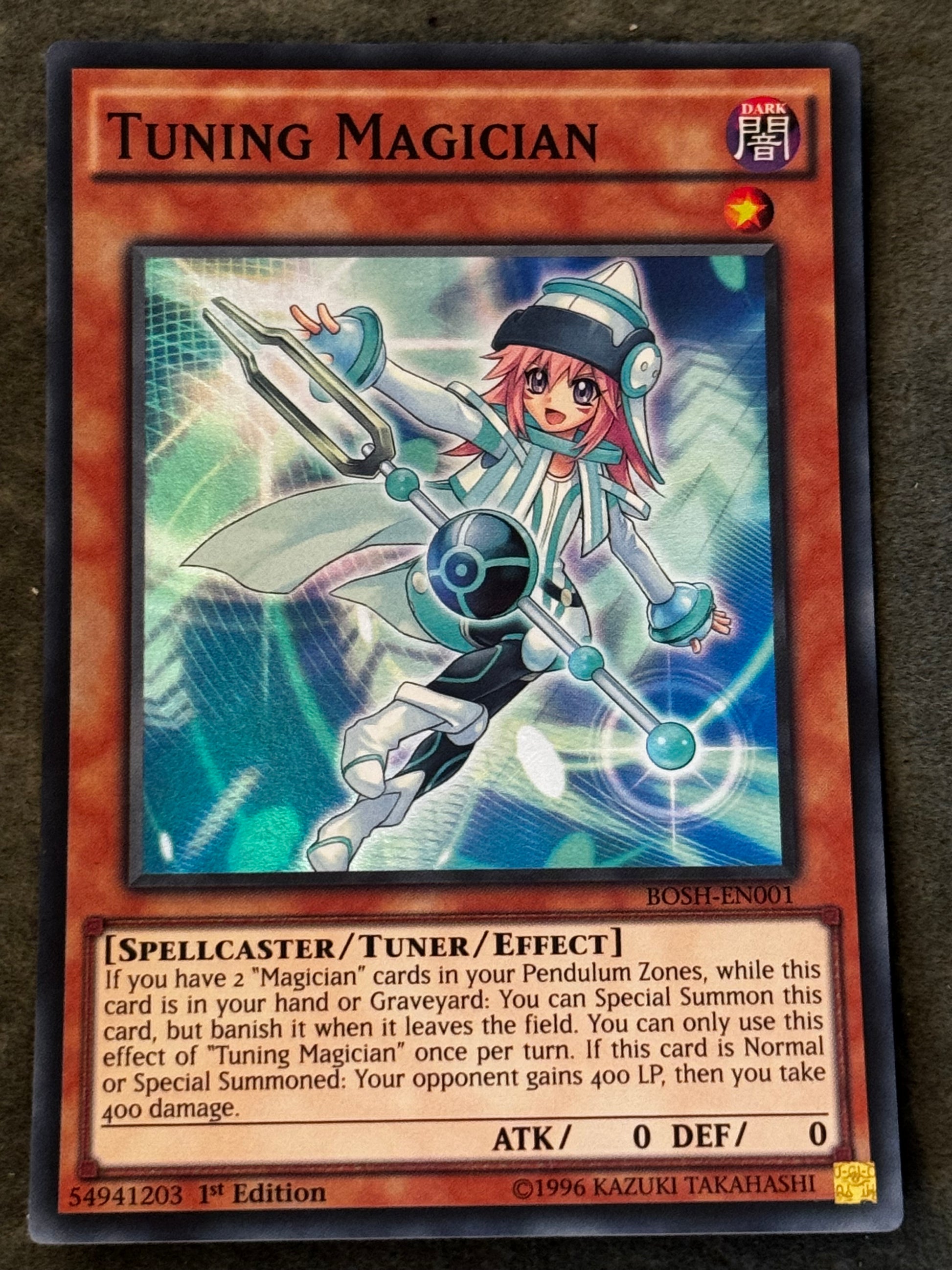 Yu-Gi-Oh! Tuning Magician BOSH-EN001 Super Rare, Near Mint, 1st Edition.